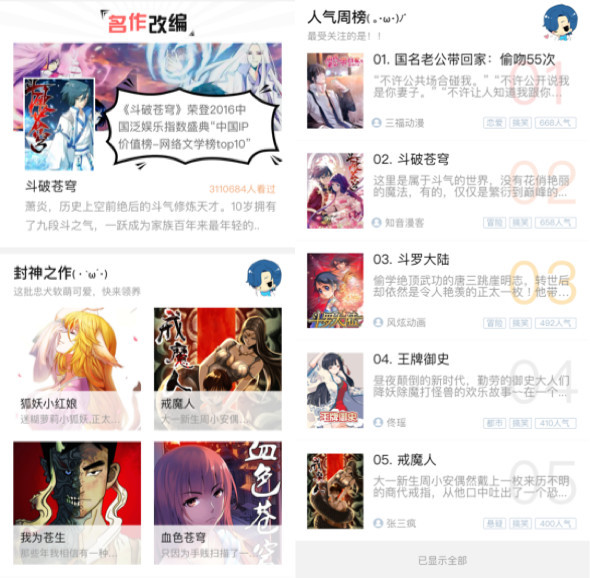 据了解,QQ阅读的漫画测试版块此次更新共收录了2000多部付费漫画,20000多部免费漫画。除了知名度极高的《鬼吹灯》《斗破苍穹》,以及1000多部正版日韩漫画,还囊括了近40部由阅文IP自主改编的热门漫画,例如《斗战狂潮》《神藏》《天后归来》《巫神纪》《校草闹够没》《修真聊天群》等。内容之丰富丝毫不逊于其他专业漫画APP。