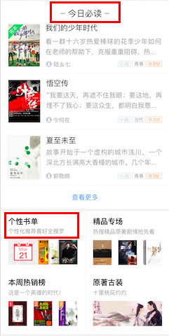 ★每日推荐--不同于网上那些从不更新的书单,是依托QQ阅读自主研发的精准智能推荐算法,并根据读者的阅读基因及阅读行为进行每日推荐的。这些优秀的文学作品会形成"今日必读"和"个性书单"两个栏目,让推荐结果更精准。